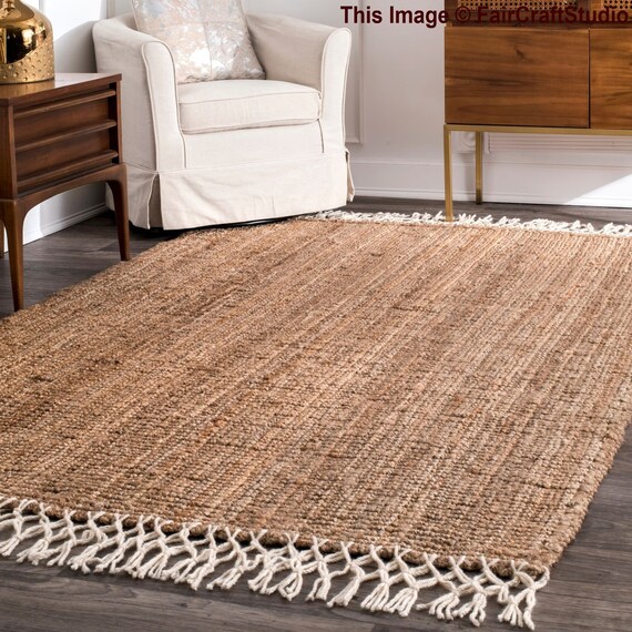 Tassled Natural Jute Rug Chindi Rug Yoga Mat Hand Braided Etsy