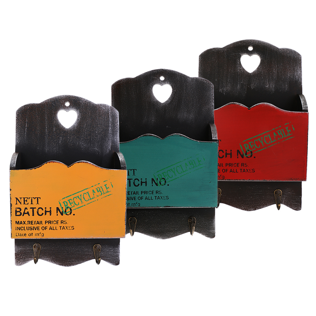 China Customized Wood Rustic Wall Mounted Key Mail Holder With 3