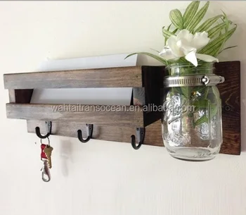 Wall Mount Home Wooden Key Holder Hooks And Mail Letter Organizer