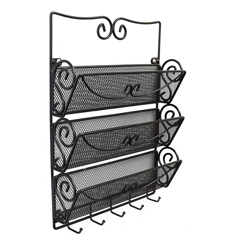 Black 3 Tier Wall Mount Metal Mail Organizer Hanging Mail