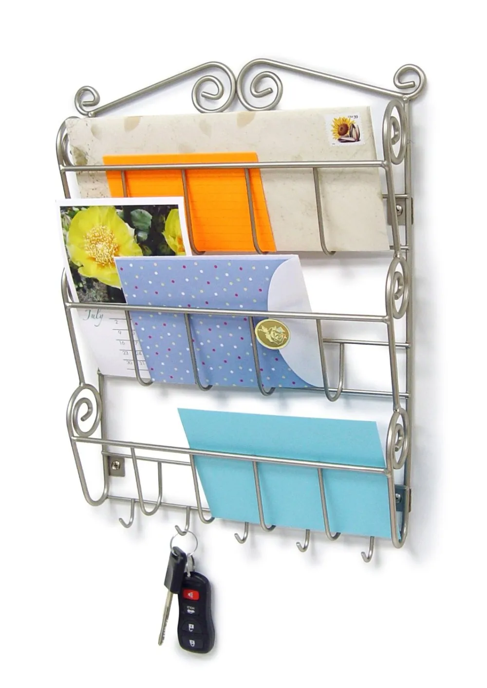 Wall Mail Organizer With Space For Keys Files And Bills Mail