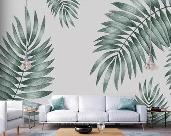 Simple Creative Hand Painted Tropical Leaves Wall Mural Etsy