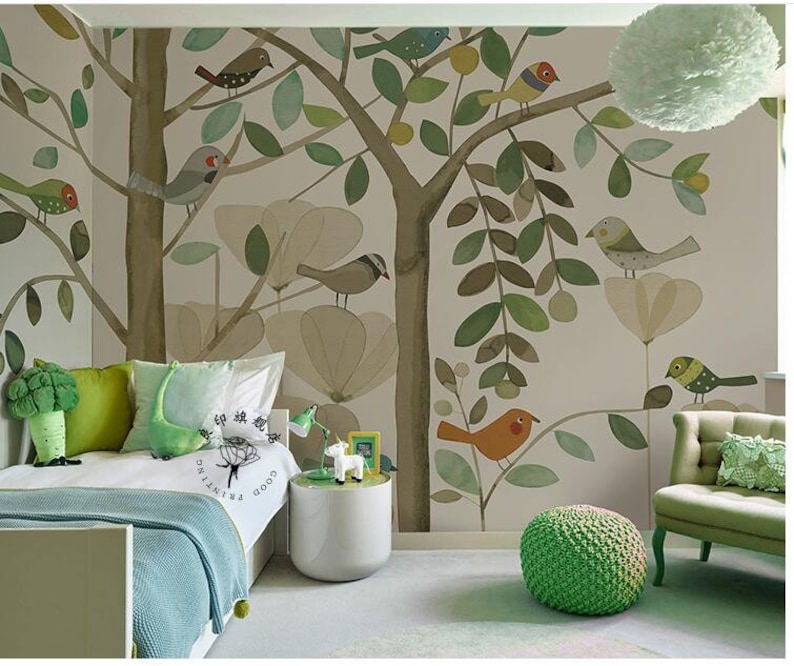 Watercolor Watercolor Tree Nursery Wallpaper Wall Mural Hand Etsy