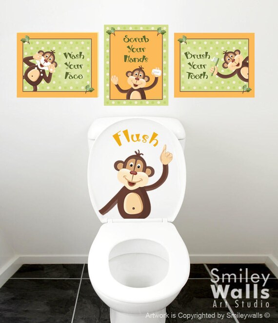 Kids Bathroom Wall Art Monkeys Wall Decal For Kids Bathroom Etsy