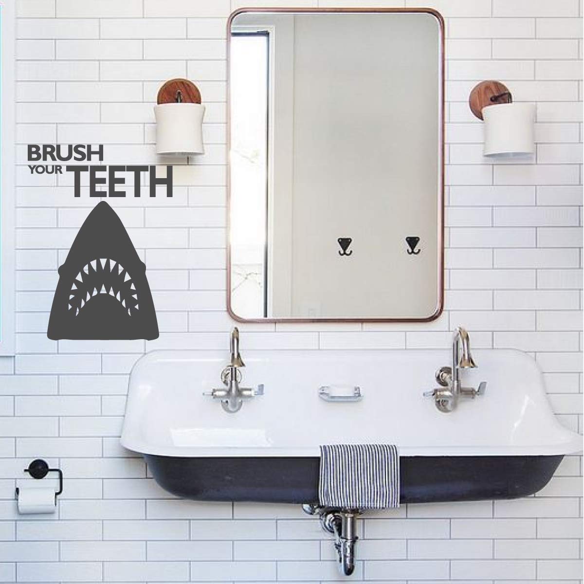 Even Sharks Brush Their Teeth Vinyl Wall Decal Bathroom Mirror Decal