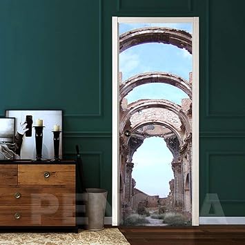 Ymygo 3d Door Mural Dilapidated Building Ideas Living Room Kitchen