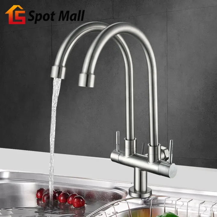 Wall Mounted Kitchen Faucet Hot And Cold Water Mixer Crane Two