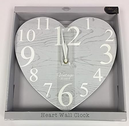 Vintage Style Heart Shaped Clock Shabby Chic Wall Clock Grey