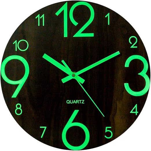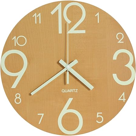 Anna Shop 12 Inch Luminous Wall Clock Silent Wooden Kitchen Wall