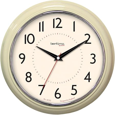 New Retro Modern Wall Clock Cream Amazon Co Uk Kitchen Home
