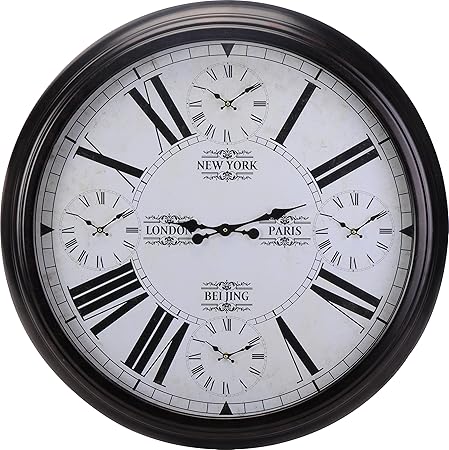 Koopman Extra Large Metal Wall Clock World City Time Zone Home