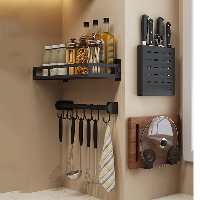 4 In 1 Multifunction Kitchen Wall Rack Wall Mounted Hanging Kitchen Organizer With 4 Hooks 3 Knife Slots