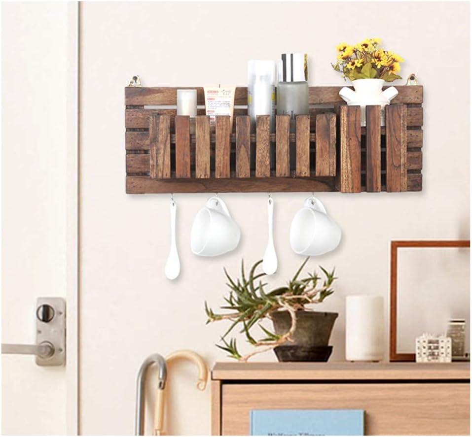 Jyxshelfa Home Shelves Shelf Solid Wood Bathroom Toilet Wall Storage Rack Kitchen Wall Retro Creative Storage Hook