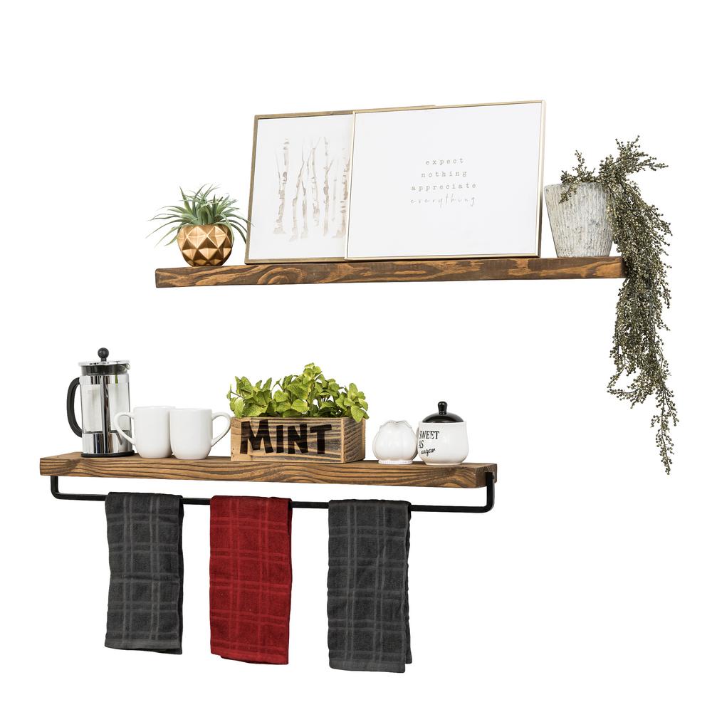 Halcent Wall Shelves Wood Storage Shelves With Towel Bar Floating