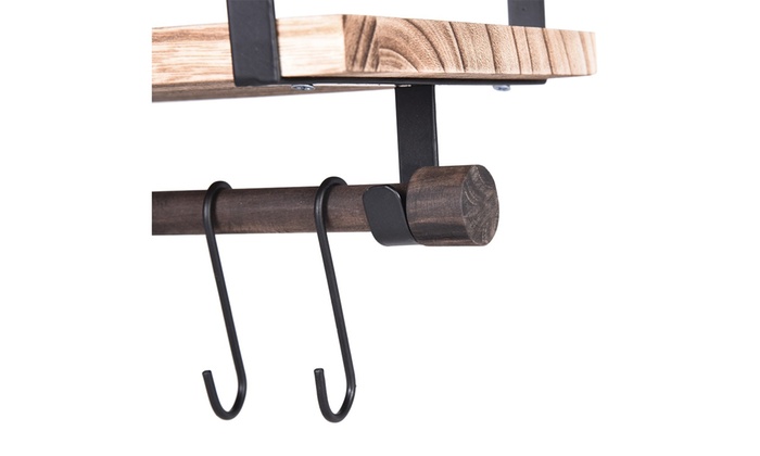 Kitchen Wall Shelf With Towel Bar And 8 Hooks Ss In804 Ss Wooden
