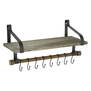 Soduku Rustic Kitchen Wood Wall Shelf Spice Rack Shelf With Towel