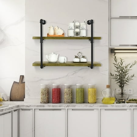 Costway 2 Shelf Rustic Pipe Shelving Unit Vintage Industrial Pipe