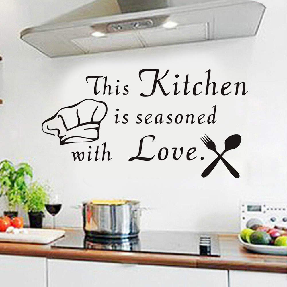 Find wall decals here for every room in your home. Use kitchen wall decals to add a creative flair to the room. Battoo no bitchin in my kitchen wall decal quote kitchen wall decals kitchen vinyl decal sticker funny gifts mothers day gift for mom chef gift ideas 16w by 13h black. If the room is small and dark a cheerful window sticker means no more staring at a blank wall while doing your dishes.