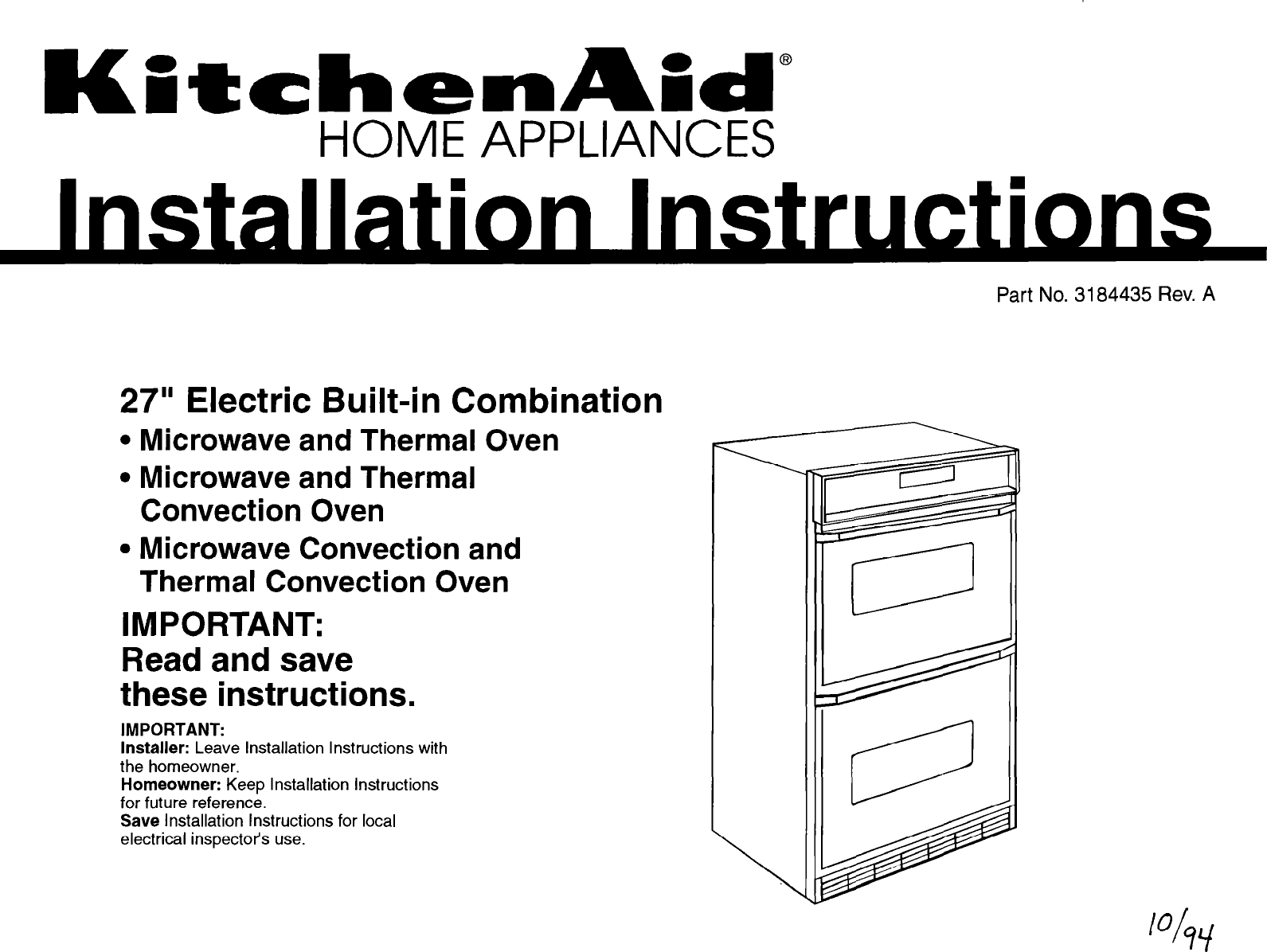 Kitchenaid Wall Oven Microwave Combo Installation Superba Parts Ki