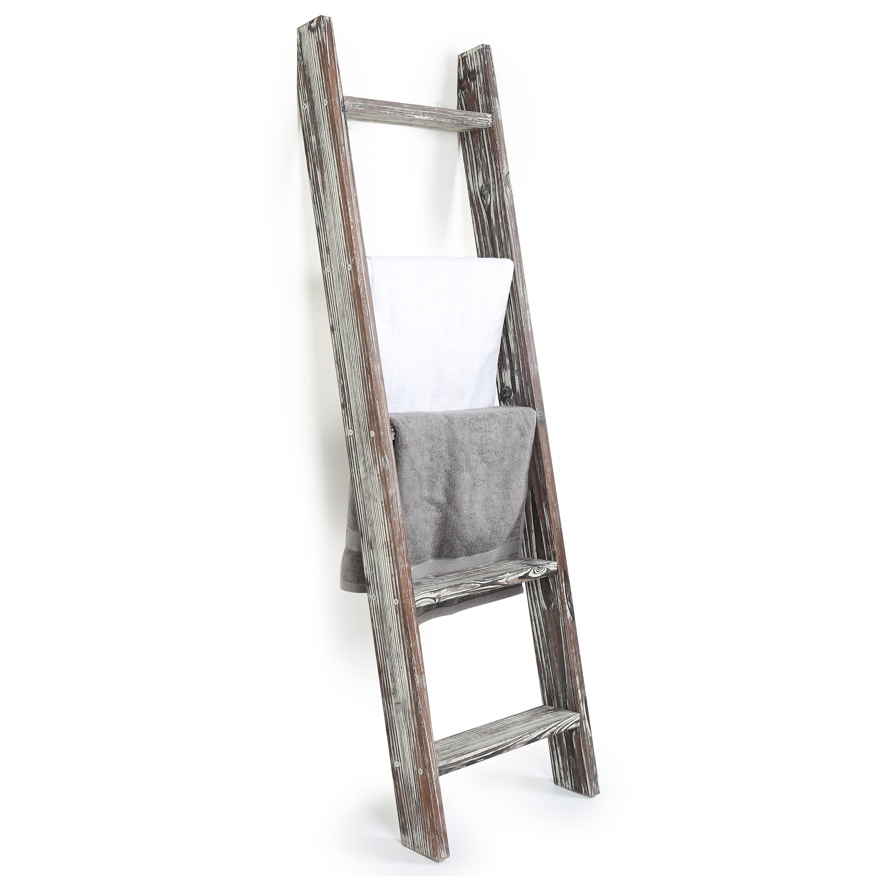 Mygift 4 5 Foot Wall Leaning Ladder Style Torched Wood Blanket Rack Walmart Com Walmart Com