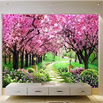 3d Wallpaper Flower Romantic Cherry Blossom Tree Small Road Wall Mural Wallpapers For Living Room Shopee Philippines