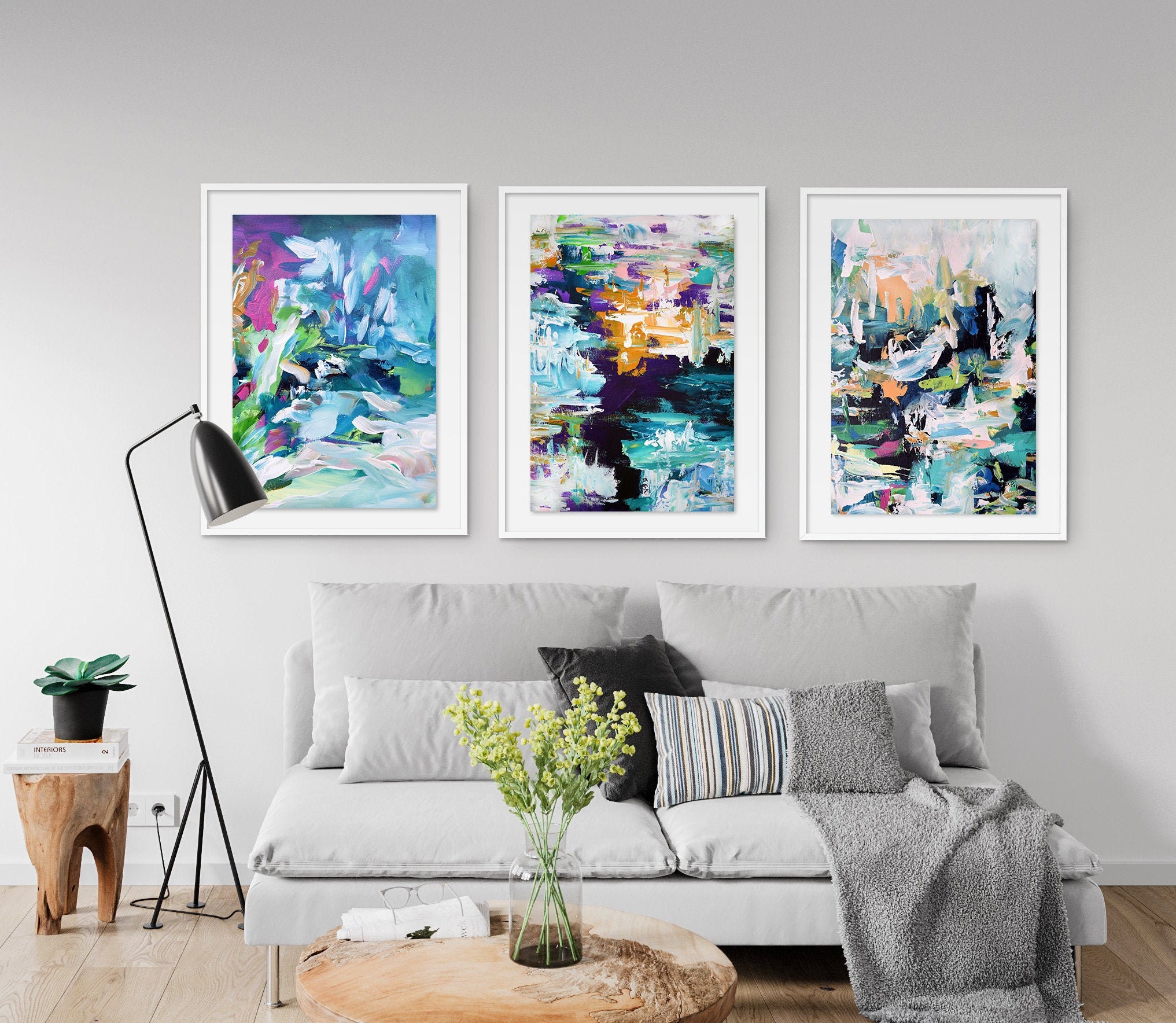 New Set Of 3 Framed Prints Teal Abstract Wall Art Large Art Etsy