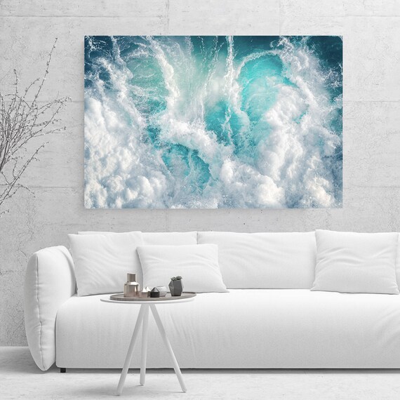 Teal Blue Abstract Canvas Large Canvas Xxl Seascape Extra Etsy