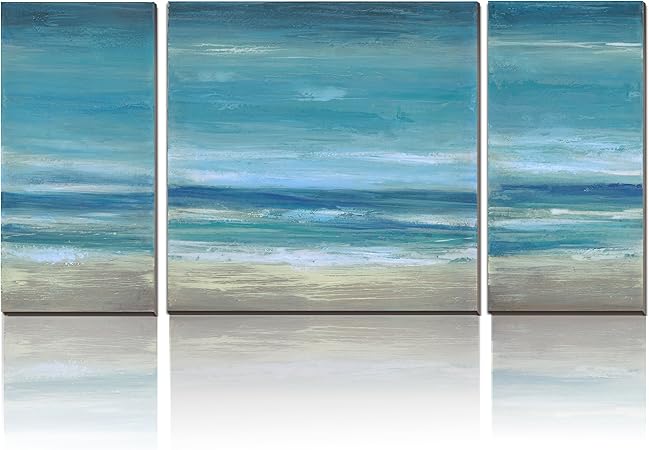 Wesiator Beach Canvas Wall Art Modern Teal Seascape Pictures And