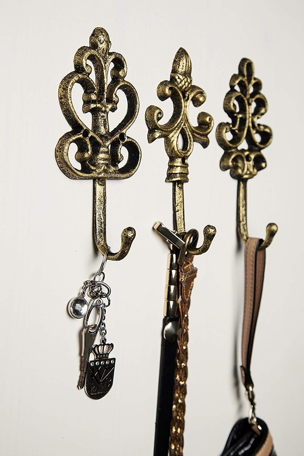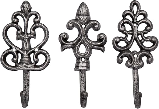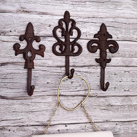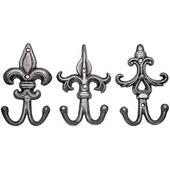 Amazon Com Set Of 3 Fleur De Lis Antique Cast Iron Hooks