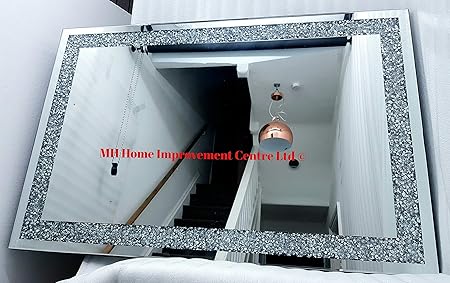 Large Sparkly Silver Wall Mirror Diamond Crush Crystal 120x80cm