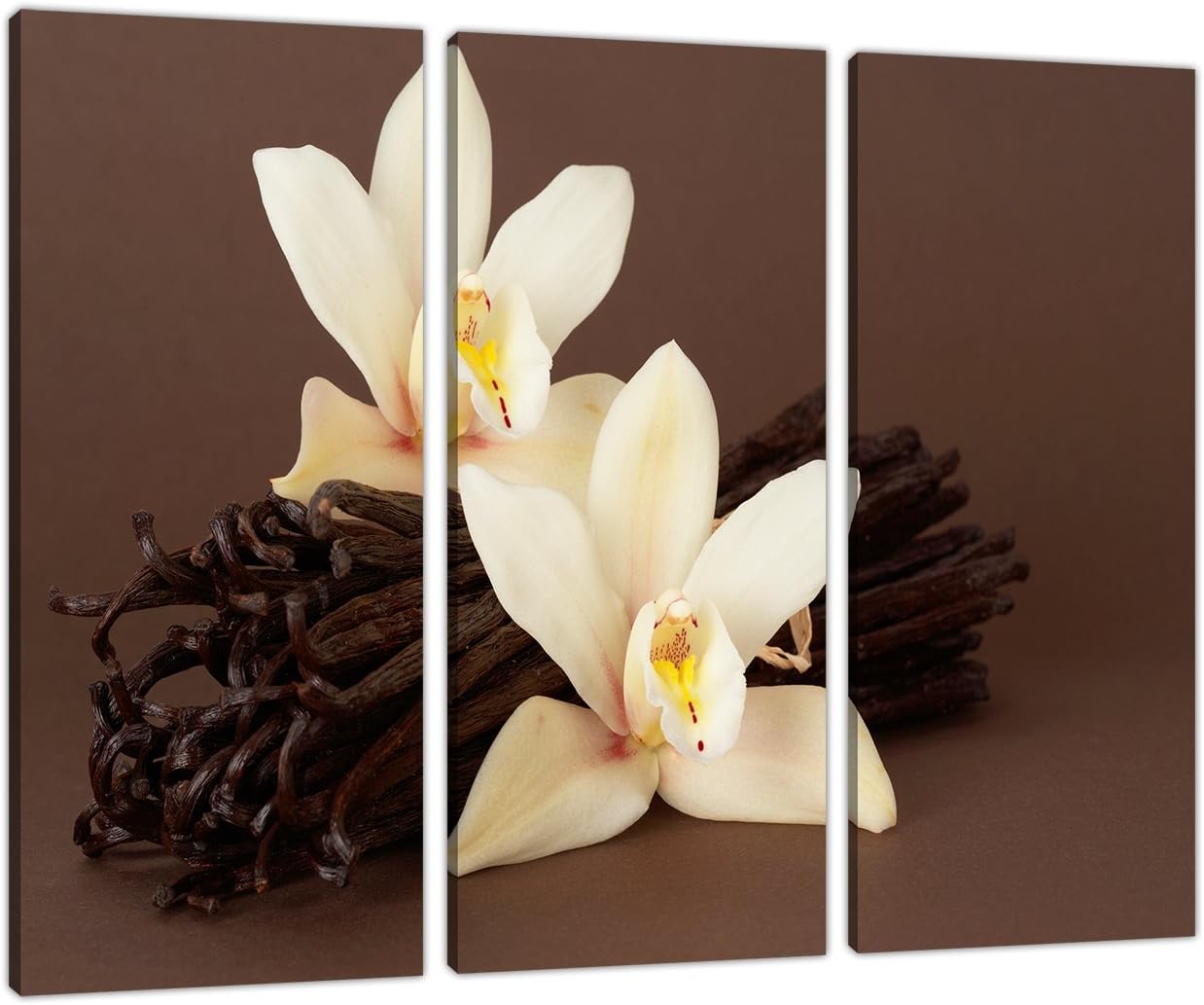Set Of 3 Piece Large Brown Cream Floral Canvas Wall Art Pictures
