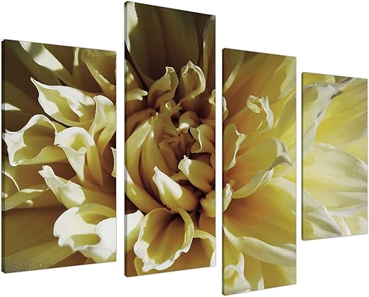Large Cream Yellow Floral Canvas Flowers Wall Art Xl Pictures Set