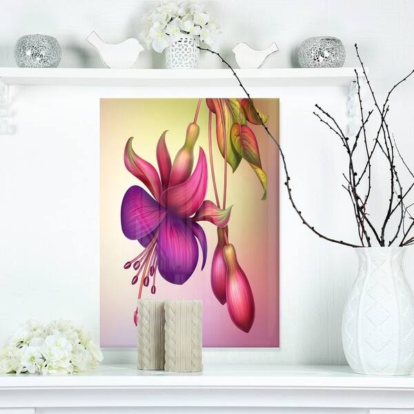 Shop Fuchsia Flowers With Green Leaves Large Floral Glossy Metal