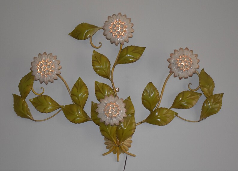 Vintage Large Italian Wall Sconce Metal Flowers Mid Century Etsy