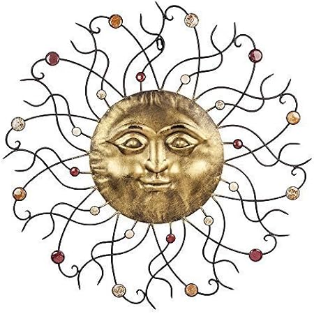 Large Golden Sun Design Metal Garden Or Home Wall Art Amazon Co