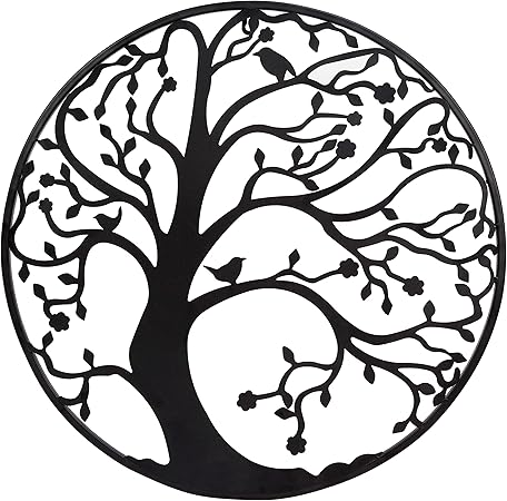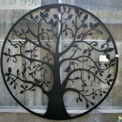 Wonderful Large Rustic Round Steel Metal Garden Tree And Bird Wall