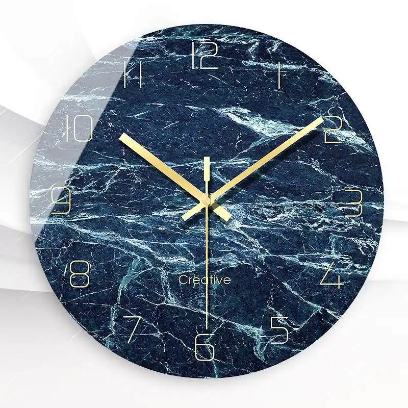 Large Marble Modern Design Wall Clock Luxury Gold Glass Nordic