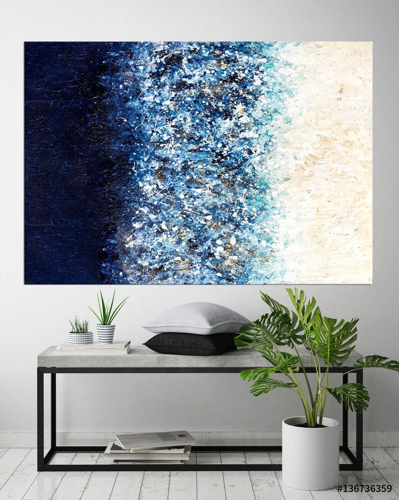 Large Wall Art Navy Blue Art Painting On Canvas Abstract Etsy