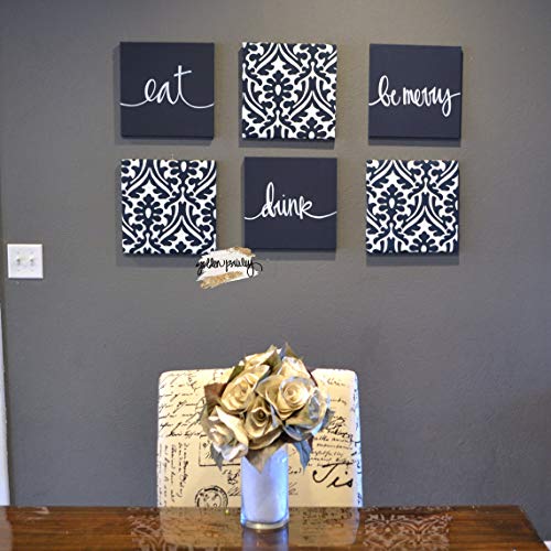 Navy Blue Eat Drink Be Merry Wall Art Pack Of 6 Canvas Wall Hangings 6 Canvas Painting Set Dining Room Decor Modern