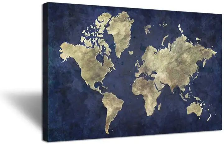 Large Size Navy Blue World Map Canvas Wall Art The Picture Vintage Style Globe Earth World Geography Painting On