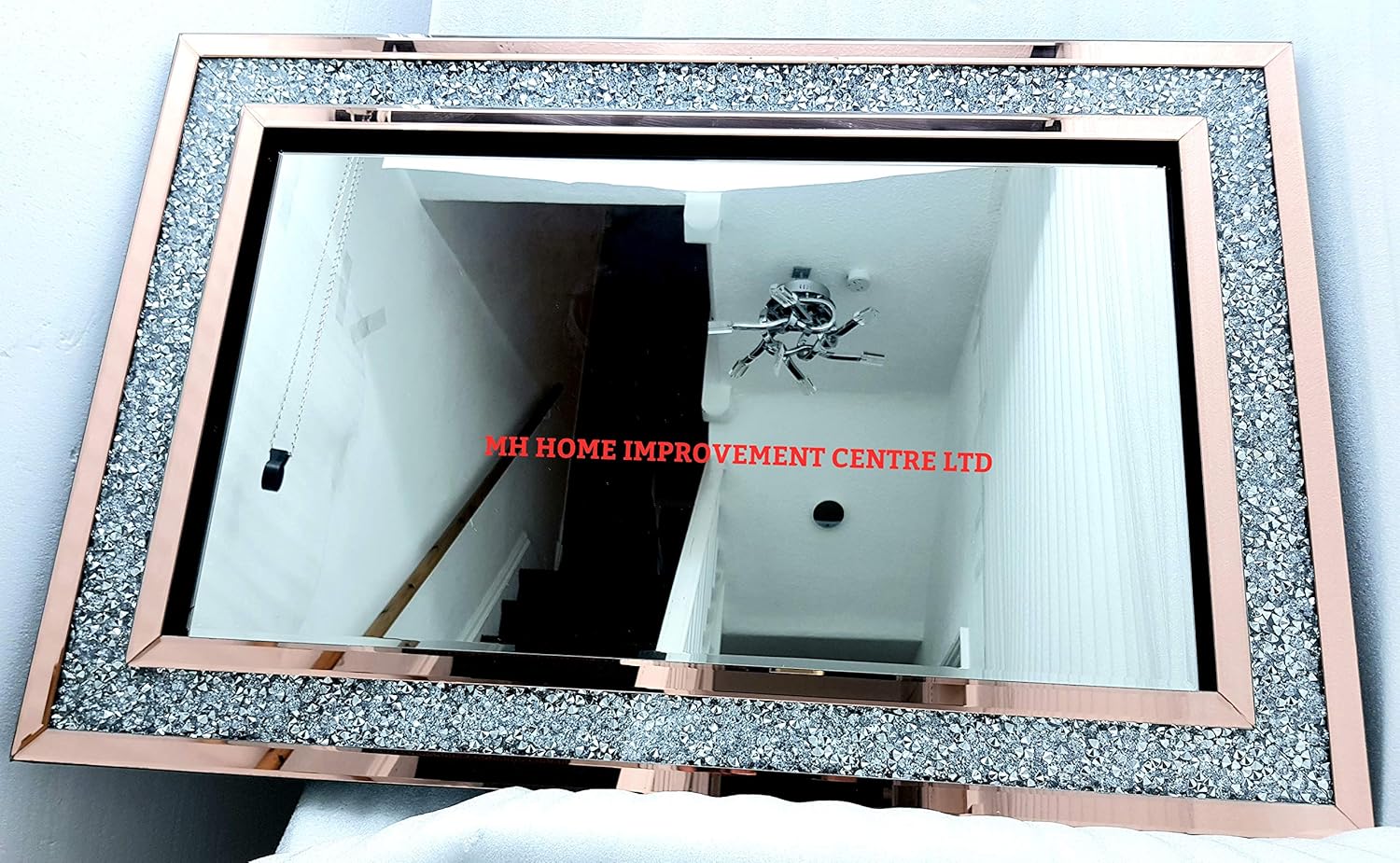 Rose Gold Diamond Crush Crystal Sparkly Wall Mirror Large 120x80cm
