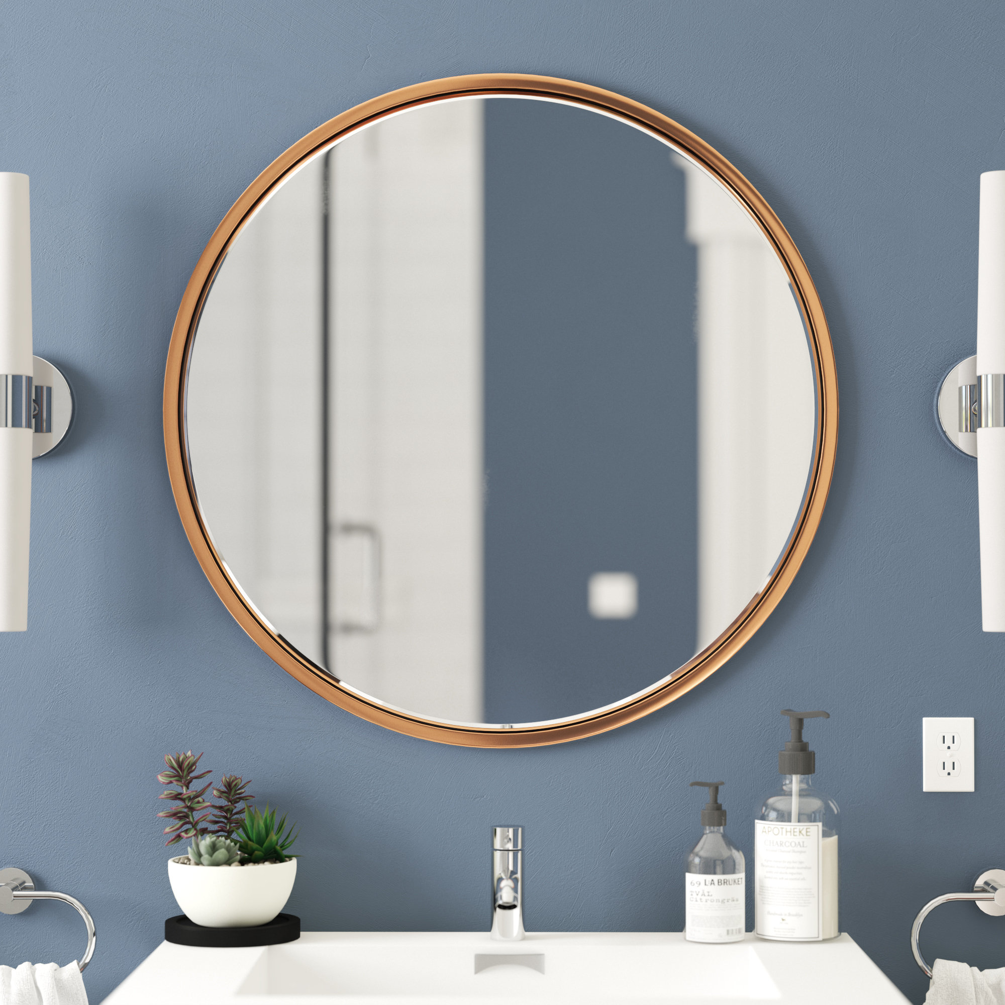 Round Rose Gold Pink Wall Mirror Large Thin Framed Copper Modern