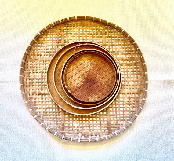 Bamboo Wall Basket Large Round Rattan Tray Shallow Flat Basket