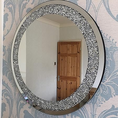 Mh Large Round Jewel Mirror Crushed Jewelled Diamante Gem Filled
