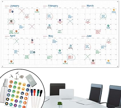 Jumbo dry erase laminated wall calendar huge 36 inch by 48 inch size monthly planner for home office classroom large date boxes reusable pet film never folded bonus 5 markers 8 tacks 1 eraser 44 out of 5 stars 1330.