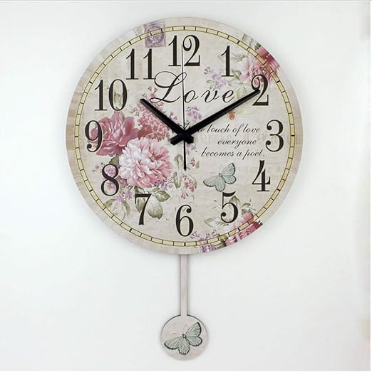 Skynature 14 Inch Large Decorative Wooden Wall Clock Romantic