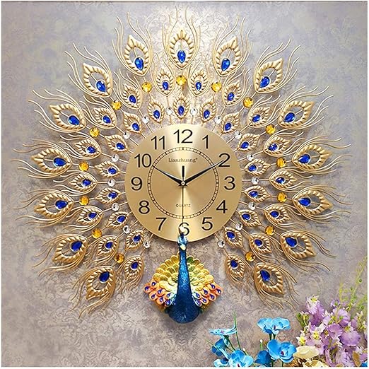 Seasiant India Large 3d Gold Diamond Peacock Wall Clock Amazon In