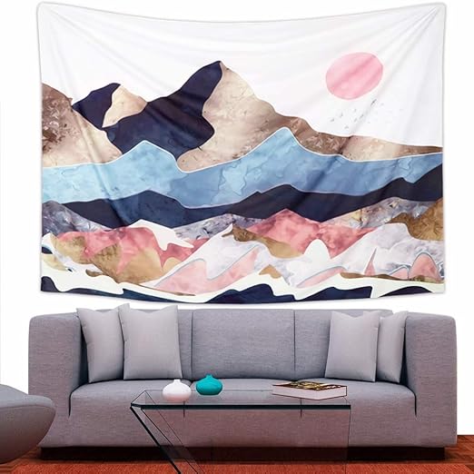 Amazon Com Ameyahud Trippy Mountain Tapestry Psychedelic Sun