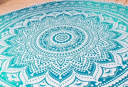 Handicrunch Indian Mandala Ombre Blue White Bohemian Boho Large
