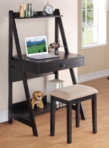 2 Pc Black Finish Wood Leaning Wall Desk With Shelves And Drawer